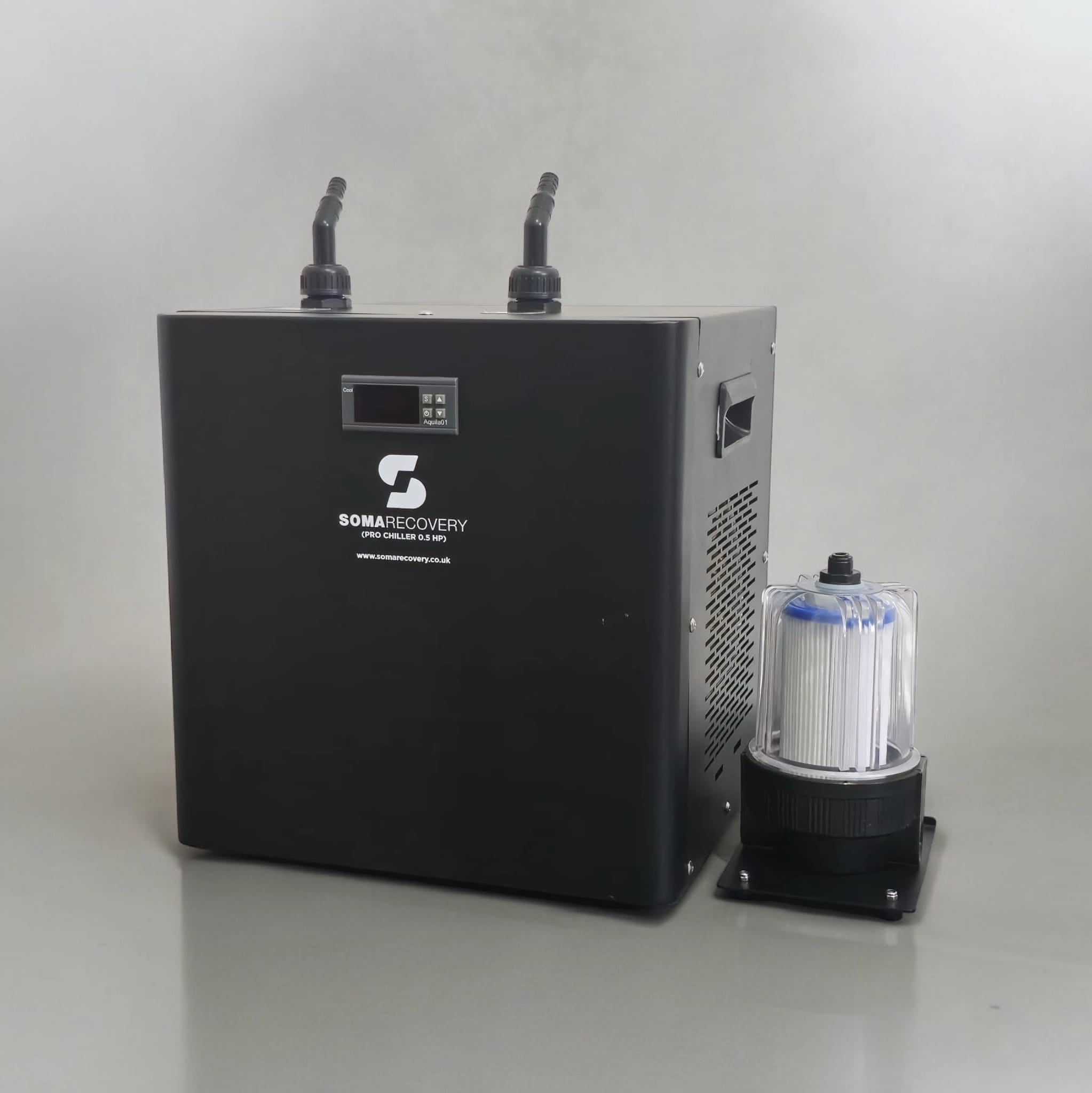 SOMA Recovery PRO® has been designed to seamlessly integrate with the SOMA Chill, guaranteeing consistent, icy, crystal-clear water down to 5°C (0.5 HP) or 7°C (0.3 HP). The chiller features a high-efficiency built-in filtration system, water pump, and an intuitive display for precise temperature control. It has a durable construction and Iand is suitable for both indoor and outdoor use.
